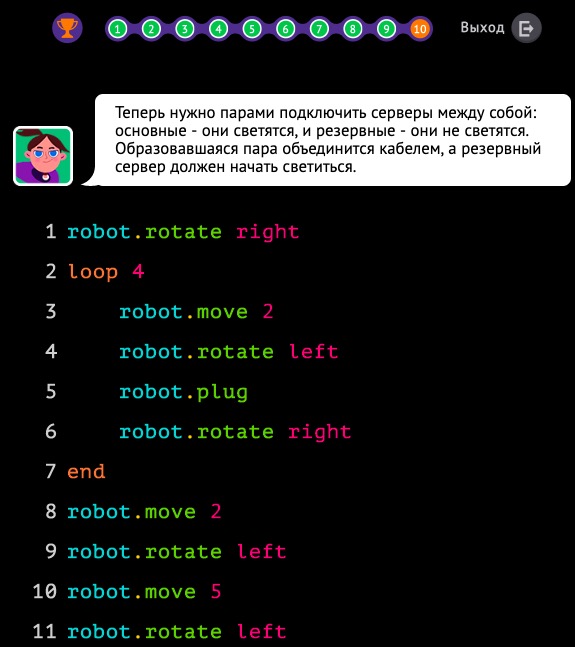 Для прохождение десятого уровня в окне справа вам нужно набрать следующую комбинацию!