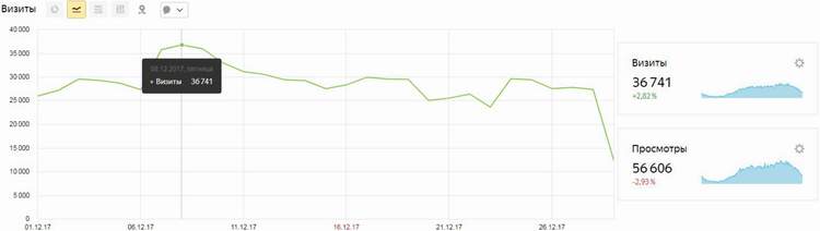 8 декабря зафиксировано 36,5 тыс. визитов и 54,5 тыс. просмотров.