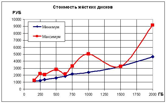 Ниже приведена таблица стоимости жёстких дисков от 160 до 2000 ГБ
